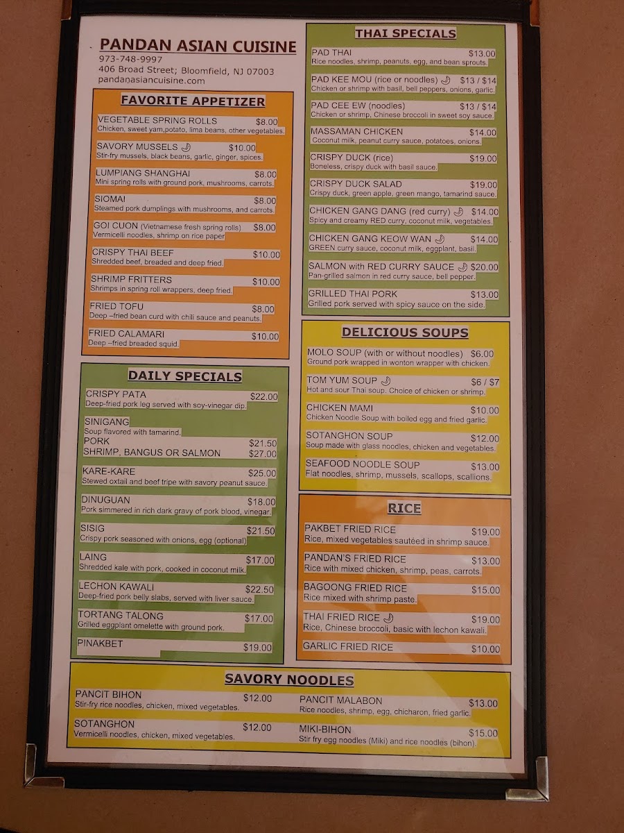If you find yourself in Bloomfield, NJ, and are craving an authentic taste of the Philippines, look no further than Pandan Asian Cuisine. This delightful restaurant, nestled at 406 Broad St, invites you to indulge in a culinary journey through the rich and diverse flavors of Filipino cuisine.